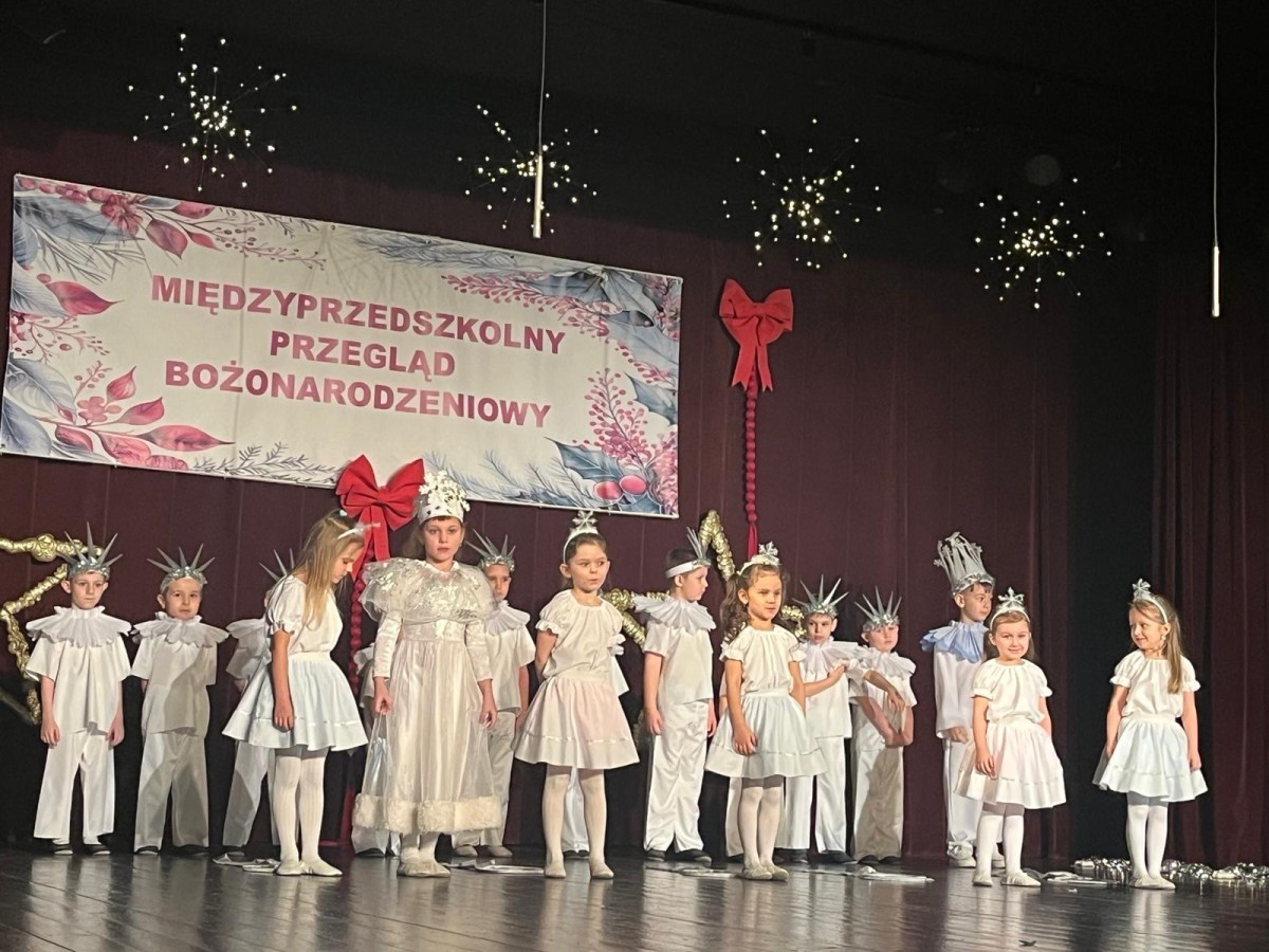 Dzieci zaprezentowały zimowy występ artystyczny, na który składały się piosenki oraz elementy ruchowe o tematyce zimowo-świątecznej. Przedszkolaki wystąpiły w przygotowanych wcześniej strojach, z dużym zaangażowaniem i radością prezentując swój program.